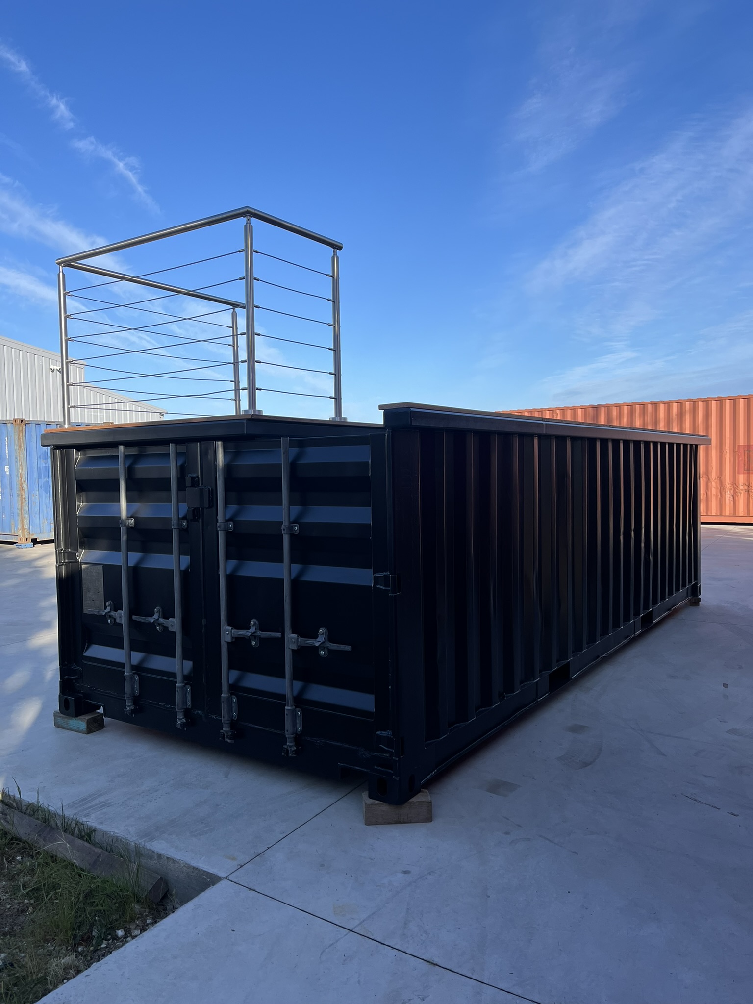 Design, robuste et 100 % personnalisable, notre piscine container s’adapte à votre terrain et à vos envies. Fabriquée en France à partir de containers maritimes recyclés, elle s’installe rapidement (hors-sol, semi-enterrée ou enterrée) et offre un style contemporain unique. Choisissez vos dimensions, revêtements, équipements et profitez d’un bassin durable, prêt à plonger.