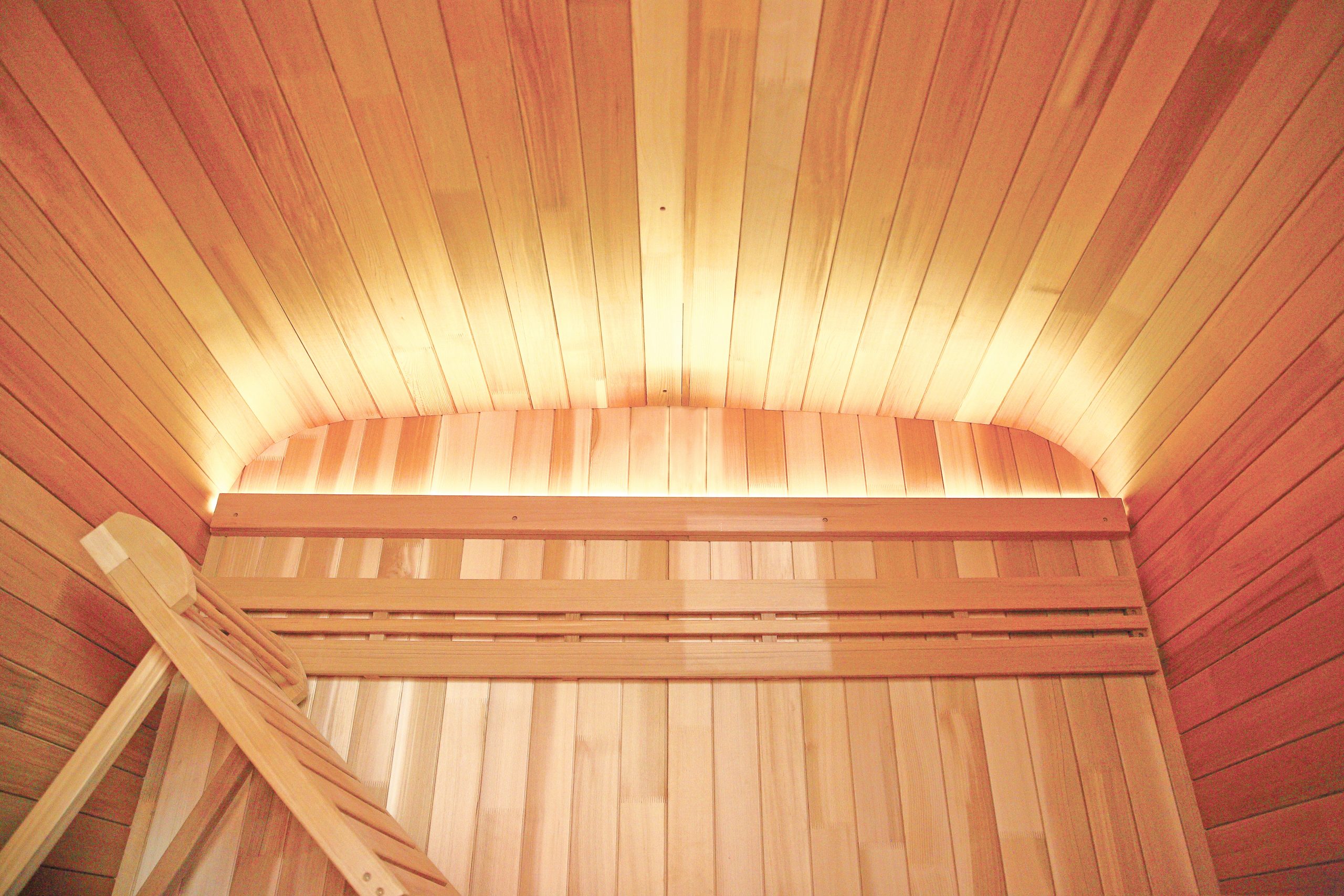 Technologie vapeur traditionnelle : poêle à installer (recommandé 6 à 8 kW), avec pierres chaudes + ajout d’eau pour une chaleur dense jusqu’à ≈ 80 °C