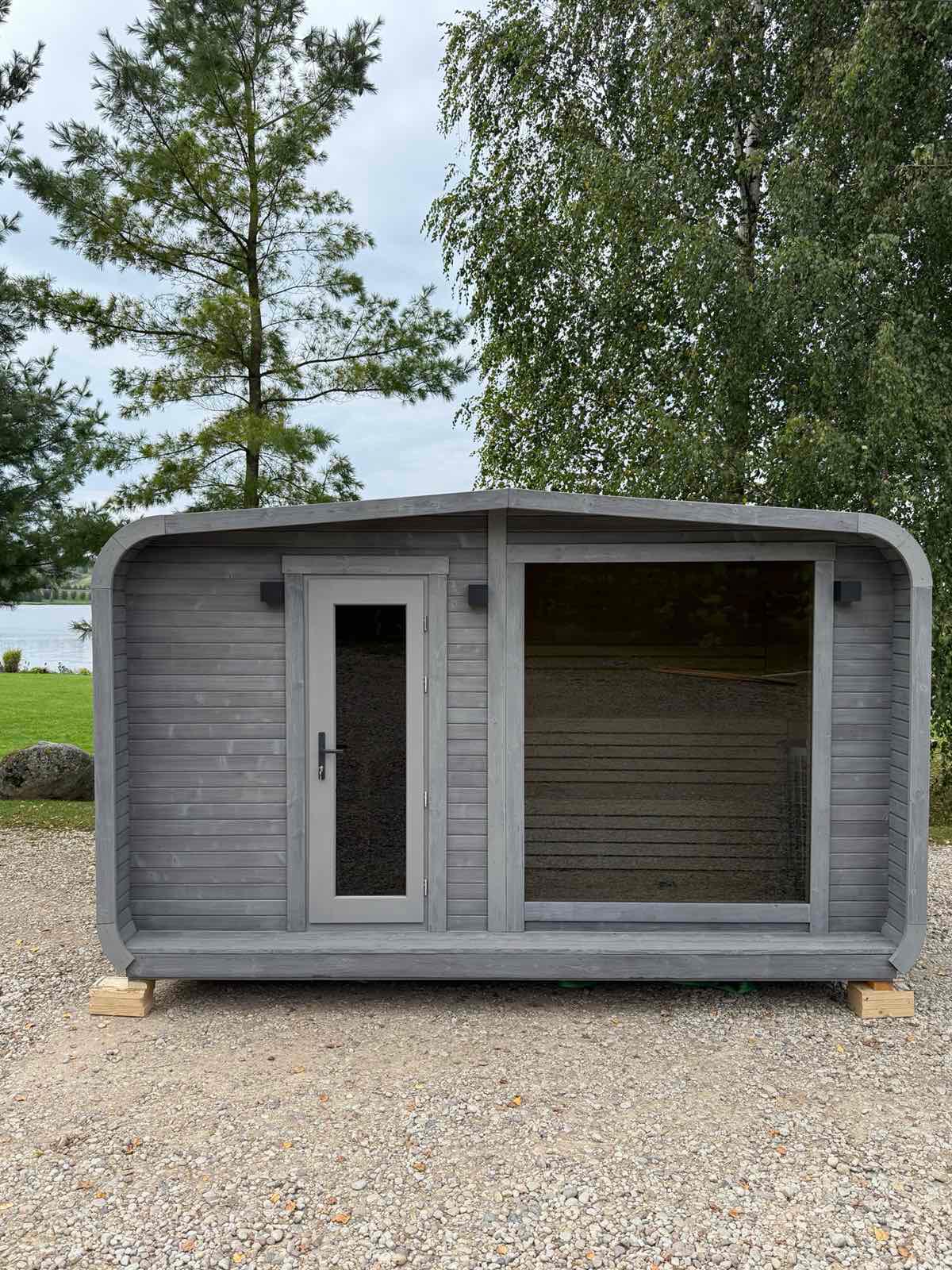 Ce modèle se distingue par sa double fonction : une zone vestiaire / détente et une cabine sauna traditionnelle, le tout dans une structure élégante et robuste, idéale pour une installation en jardin, gîte ou espace bien-être.