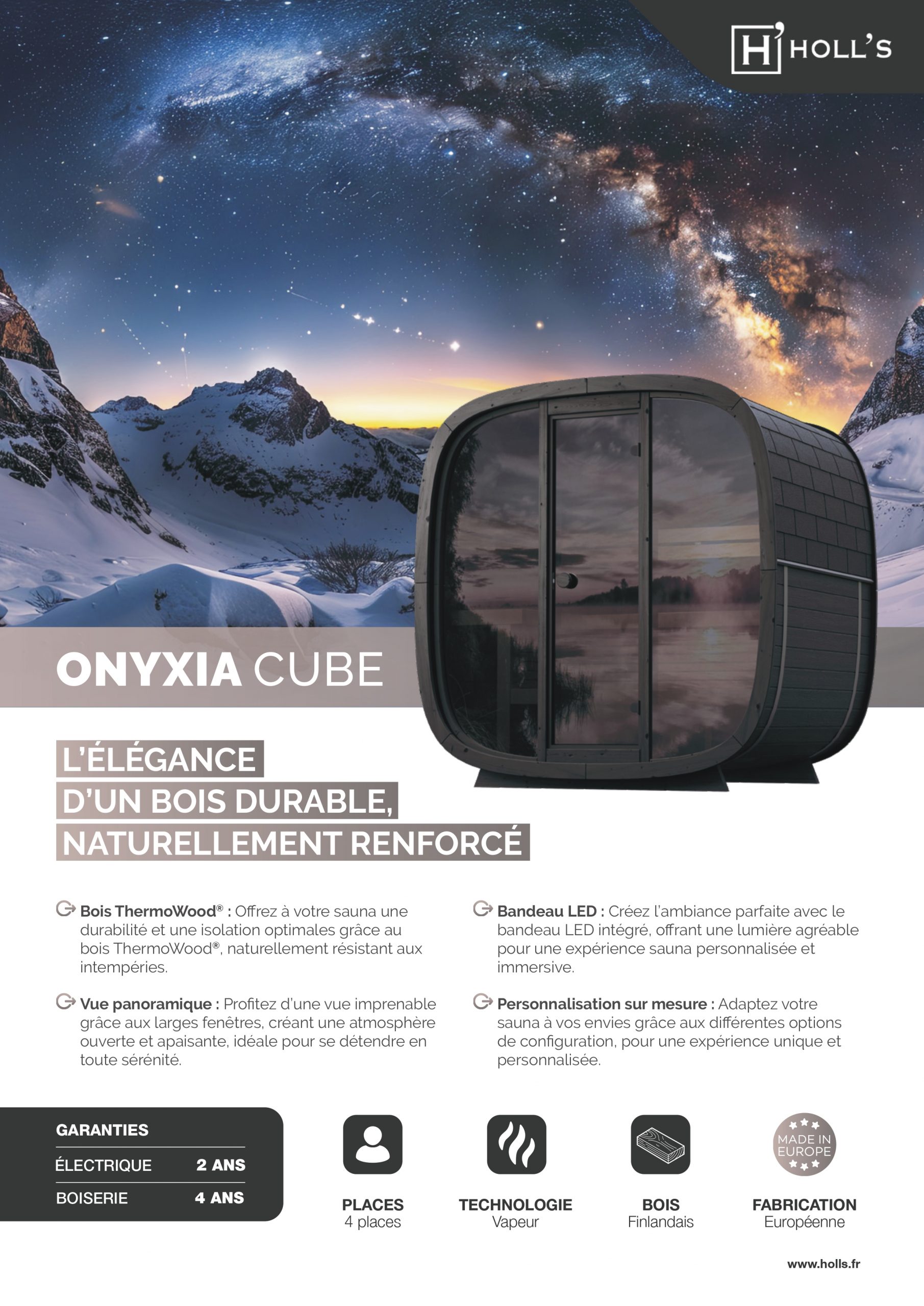 👉 Le Sauna extérieur Onyxia Cube est le choix parfait pour ceux qui veulent un sauna vapeur premium, élégant, confortable, pour partager des moments de détente en famille ou entre amis, avec style et robustesse.