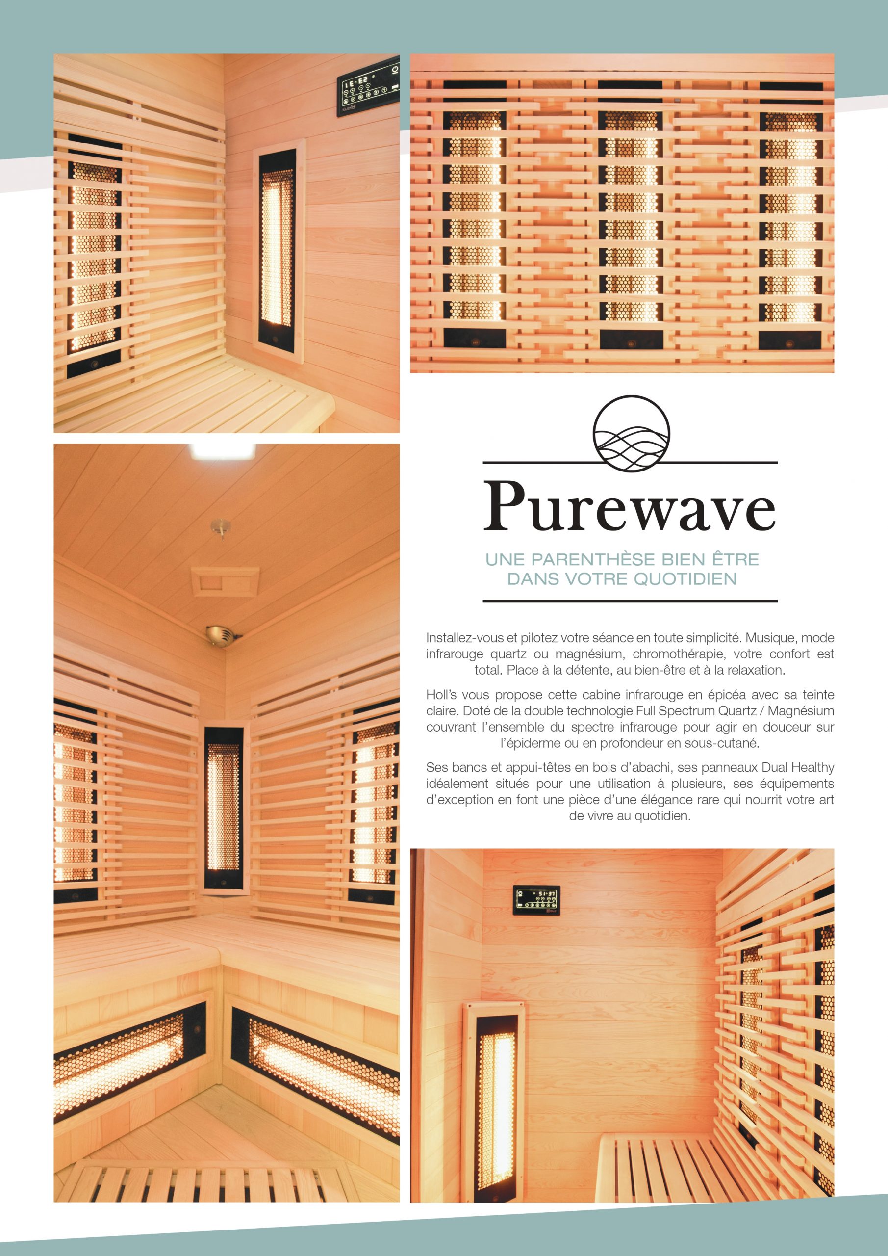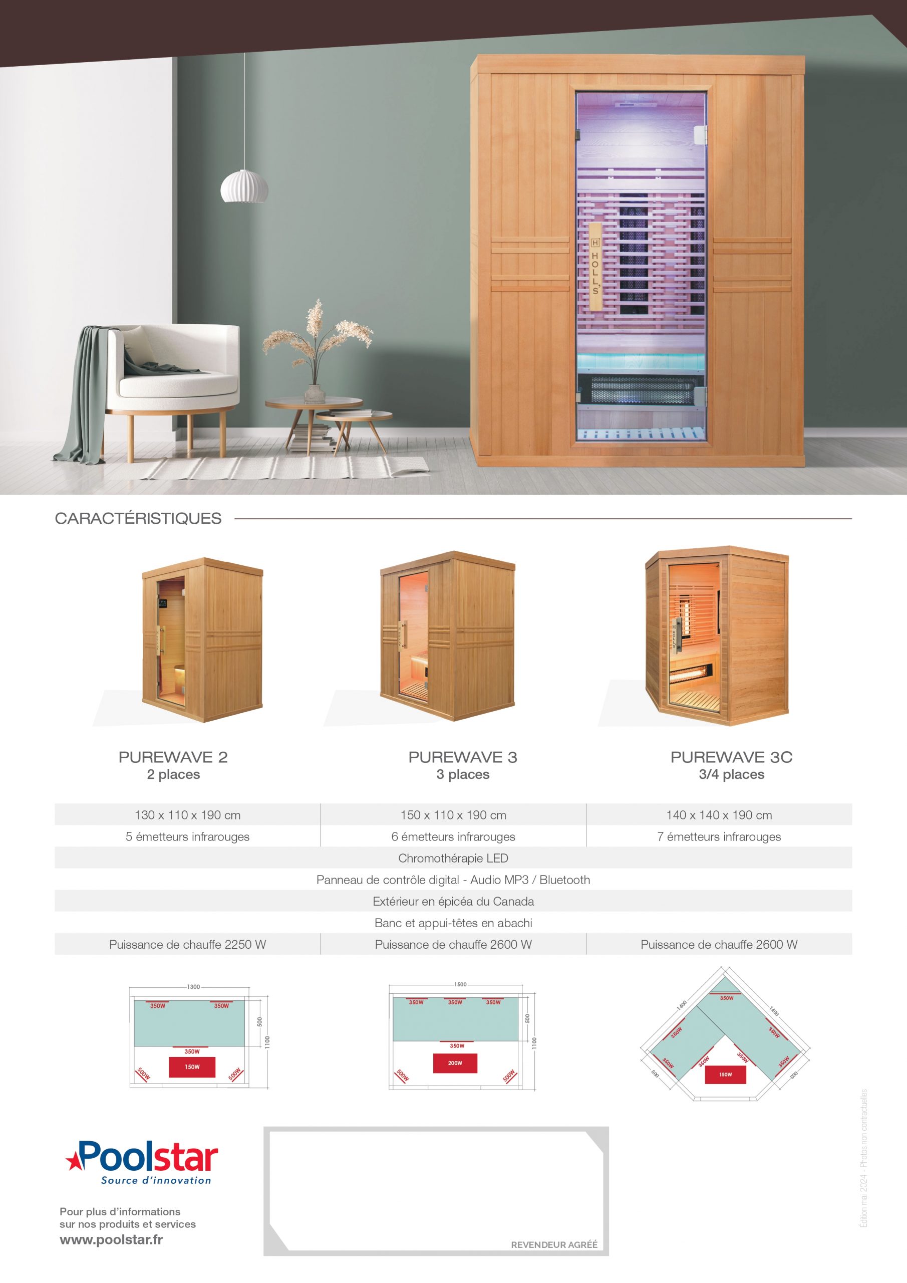 Purewave 3 | 3 personnes | ≈ 150 × 110 × 190 cm | 6 émetteurs Quartz + Magnésium | ≈ 2 600 W |