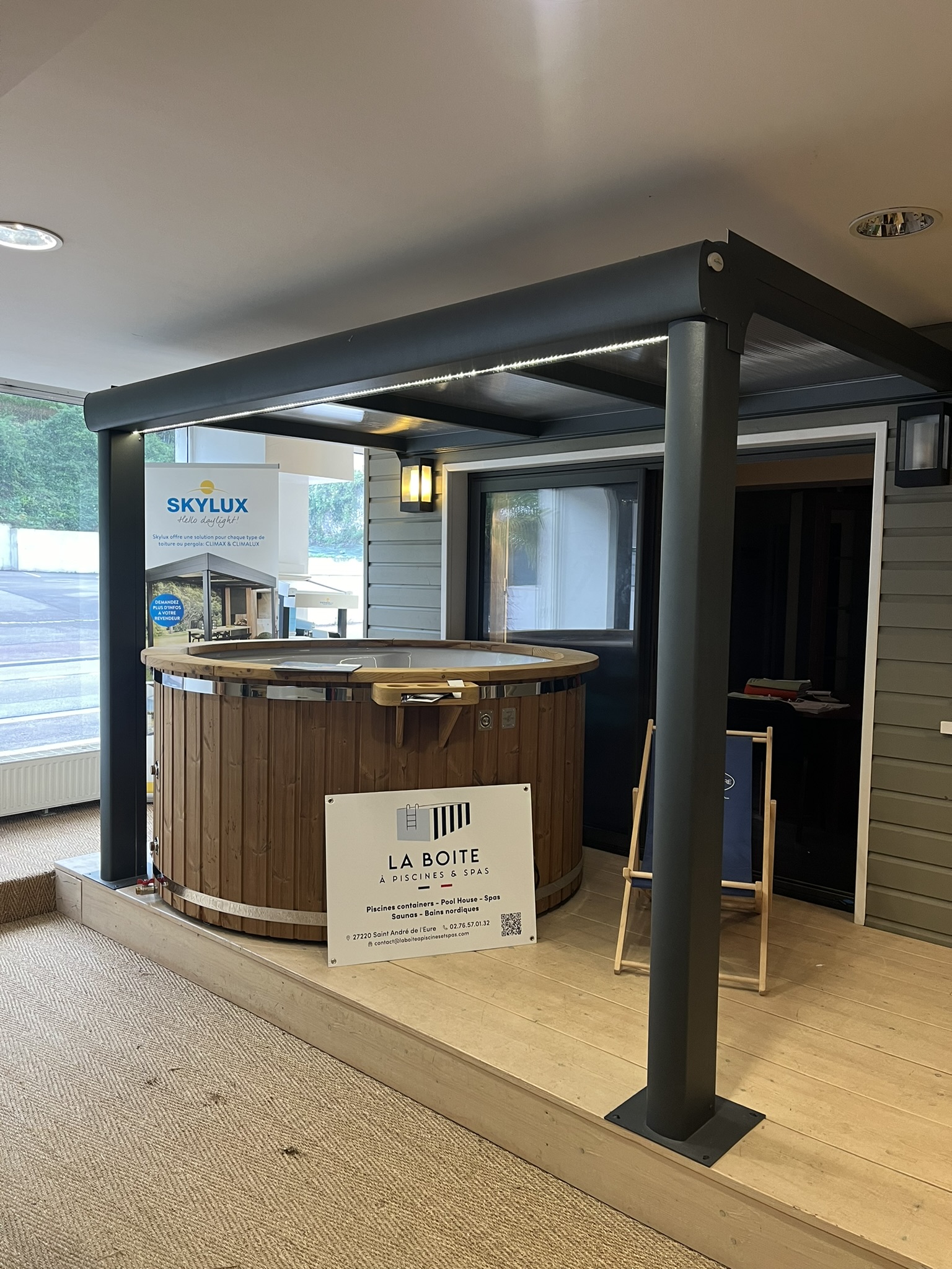 Le bain nordique est un bassin extérieur en bois ou en composite, chauffé au bois ou à l’électricité. Il offre une expérience apaisante et naturelle, parfaite pour se relaxer en toutes saisons.